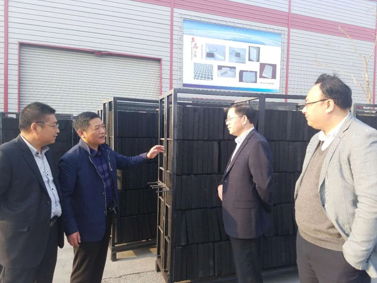 在调研过程中,当得知我司与东南大学校企深度合作正在联合组建硕士研究生工作站,并共同承担地方重点研发计划项目子课题——“固废源高活性粉体双调控发泡制备轻质保温材料技术及示范”,以及双方正在共同联合起草江苏省地方标准——《高性能水泥基泡沫保温板外墙外保温系统应用技术规程》时,周局长赞赏有加,对我司坚持走“产学研”联合开发之路成为行业标杆企业给予了充分肯定,赞许企业在当前形势下取得的可喜发展业绩实属不易。
