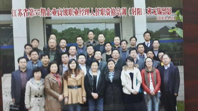 2013年5月25日,赵其军董事长参加由省委组织部、省经信委组织的江苏省第57期企业好品质职业经理人任职资格培训班。(附图)